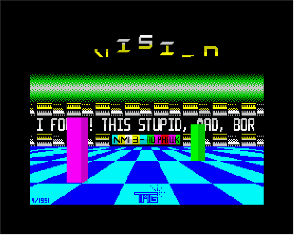 Наименование (name): No More Intelligence 3: No Panic Автор(ы) (authors): Dynamite Dynasty Год (year): 1991 Party: --- Картинки (pictrures):